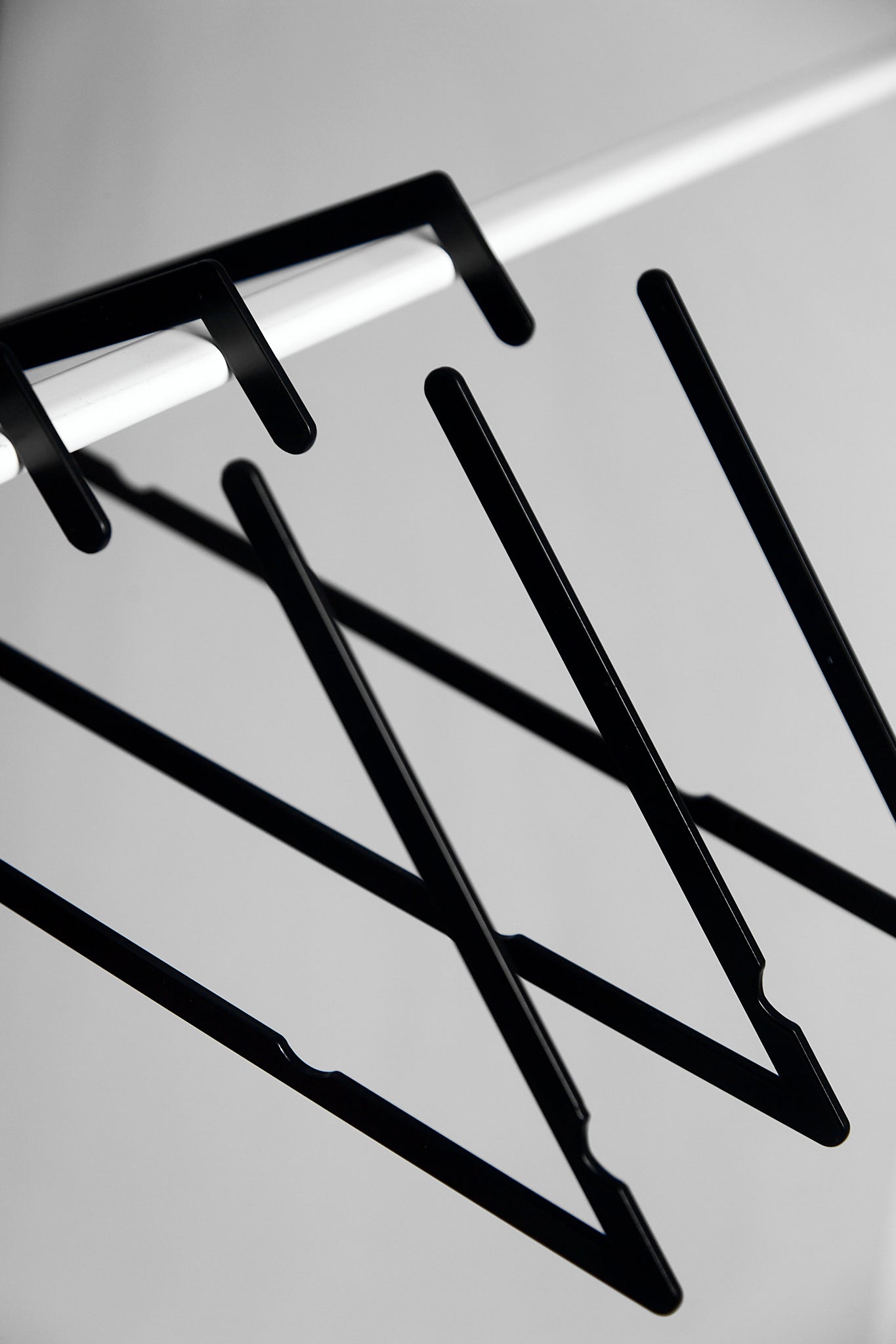 A metal coat hanger designed as a permanent object, not a disposable accessory.